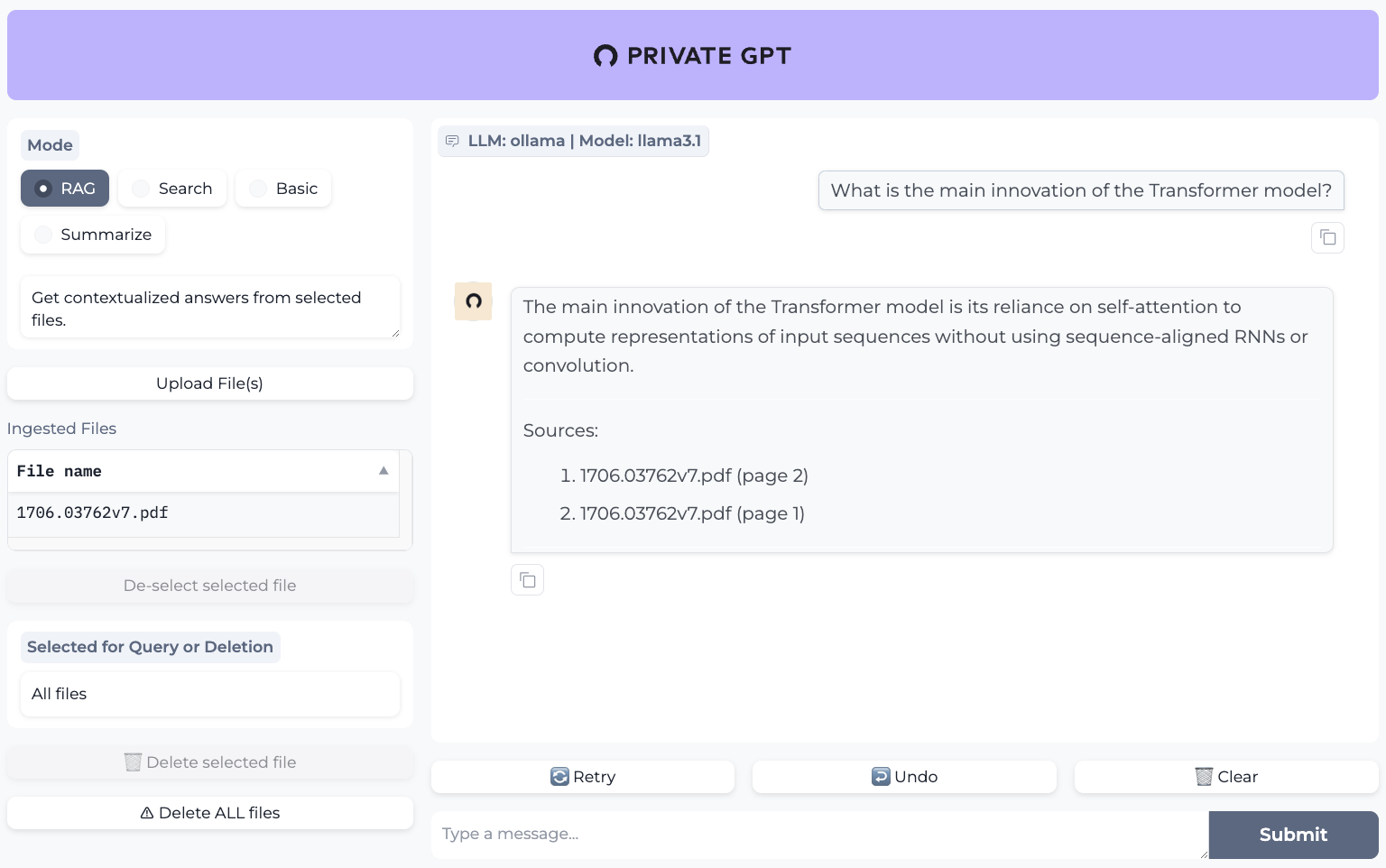 If you use PrivateGPT in a paper, check out the Citation file for the correct citation.